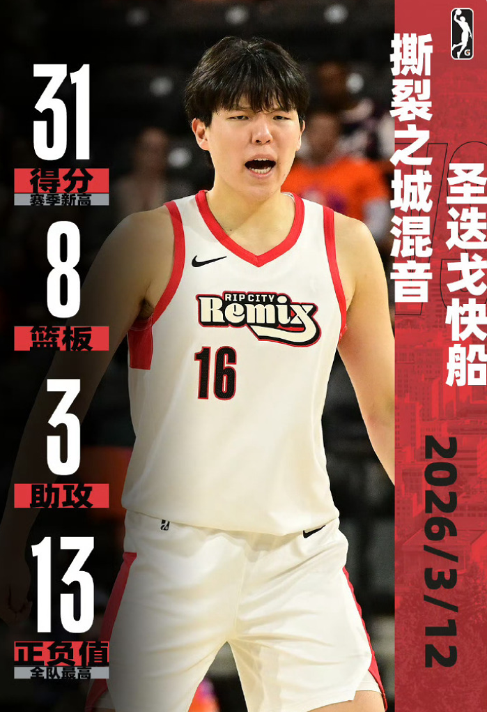 第三节的杨瀚森依旧是4中4拿到10分,三节打完12中12拿到27分,杨瀚森创造了个人G联赛的连续命中纪录,全场比赛31分钟,16中14,三分1中1,拿到31分8篮板3助攻1抢断1盖帽仅1失误,命中率88%,三分命中率100%。
